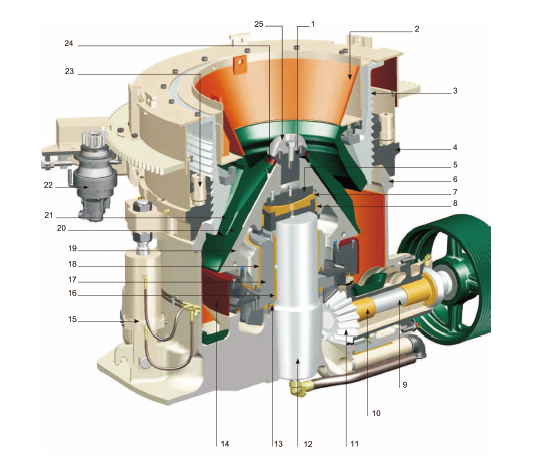 LCH series cone crushers can be converted from the finest to the coarsest simply by replacing the mantle, bowl liner, adapter ring and the wedge bolts.