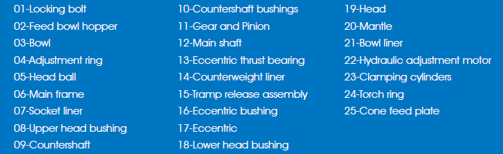 Bronze bushing used throughout provide superior load capability in the high-shock, dusty crushing environment. They’re low-cost, and easy to replace in the field with normal tools. LCH cone crushers are easy to disassemble. All components are accessible from the top or the side. The head and bowl can be